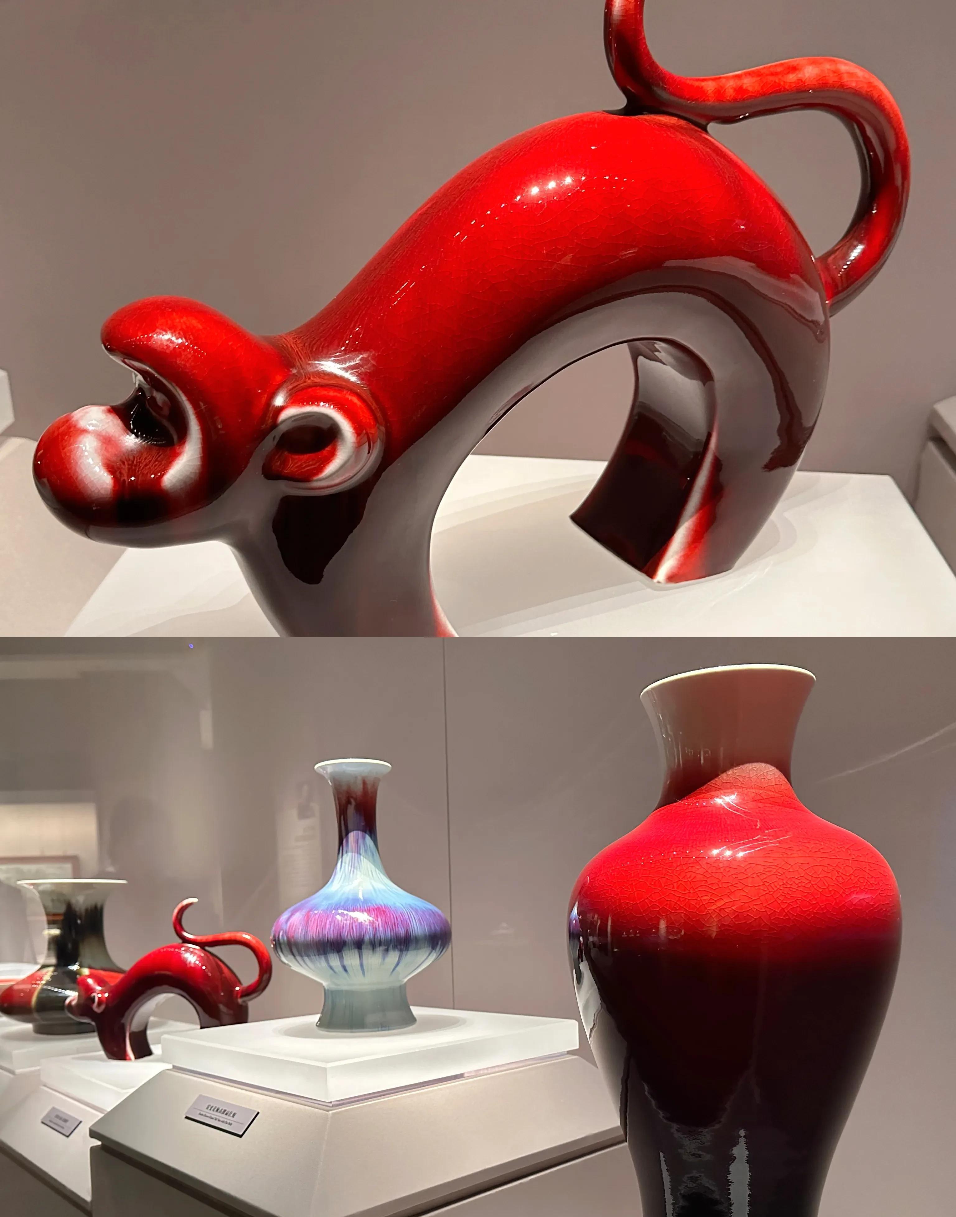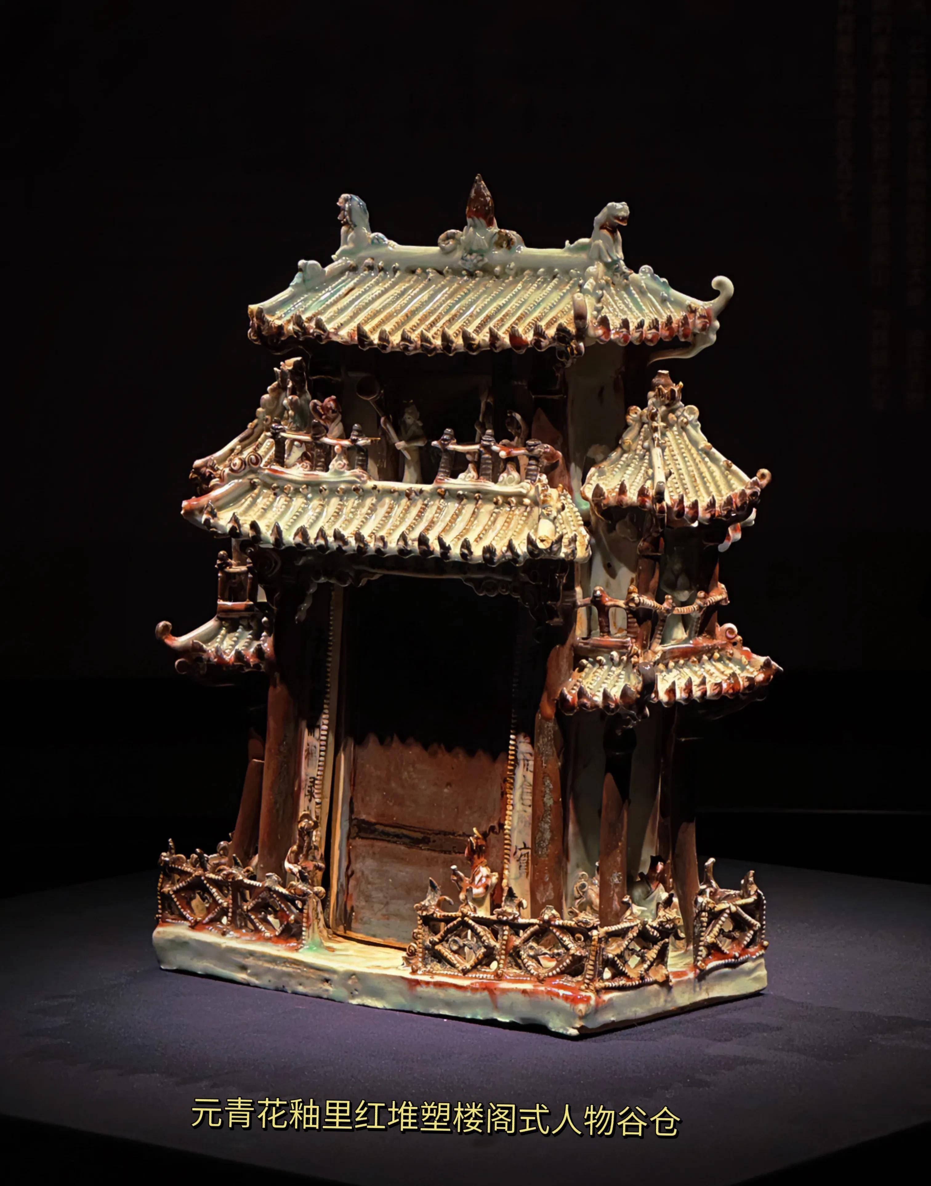 在这里见到了读书时曾出现的,商双面神人青铜头像、唐三彩、元青花釉里红堆塑楼阁式人物谷仓等等馆藏国宝。