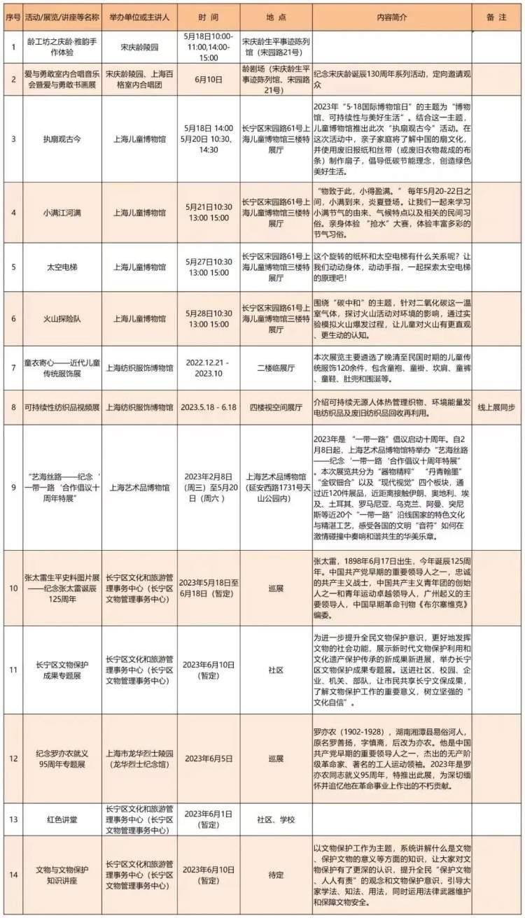 在5月18日第47个“国际博物馆日”及6月10日“文化和自然遗产日”来临之际,2023长宁区“文博宣传月”将于5月18日起正式开启。届时,将有一系列丰富多彩的文博活动等着你,快来看看吧!