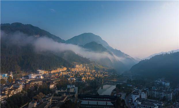 昔日工厂烟囱林立的景象没了,取而代之的是春风阁、西羌汇、寿溪湖……崭新的建筑勾勒出这座小镇古老的文化底蕴,在高山峡谷、湖光山色的背景下,俨然是一幅水墨画。