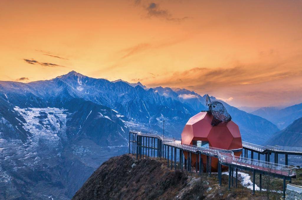 在四川省阿坝州汶川县布瓦村,有一座“花果山”,山上没有孙悟空,但有一只大熊猫,趴在一个巨大的甜樱桃雕塑上,俯瞰着岷江和汶川县城,让人想起成都市春熙路商圈的爬墙大熊猫。