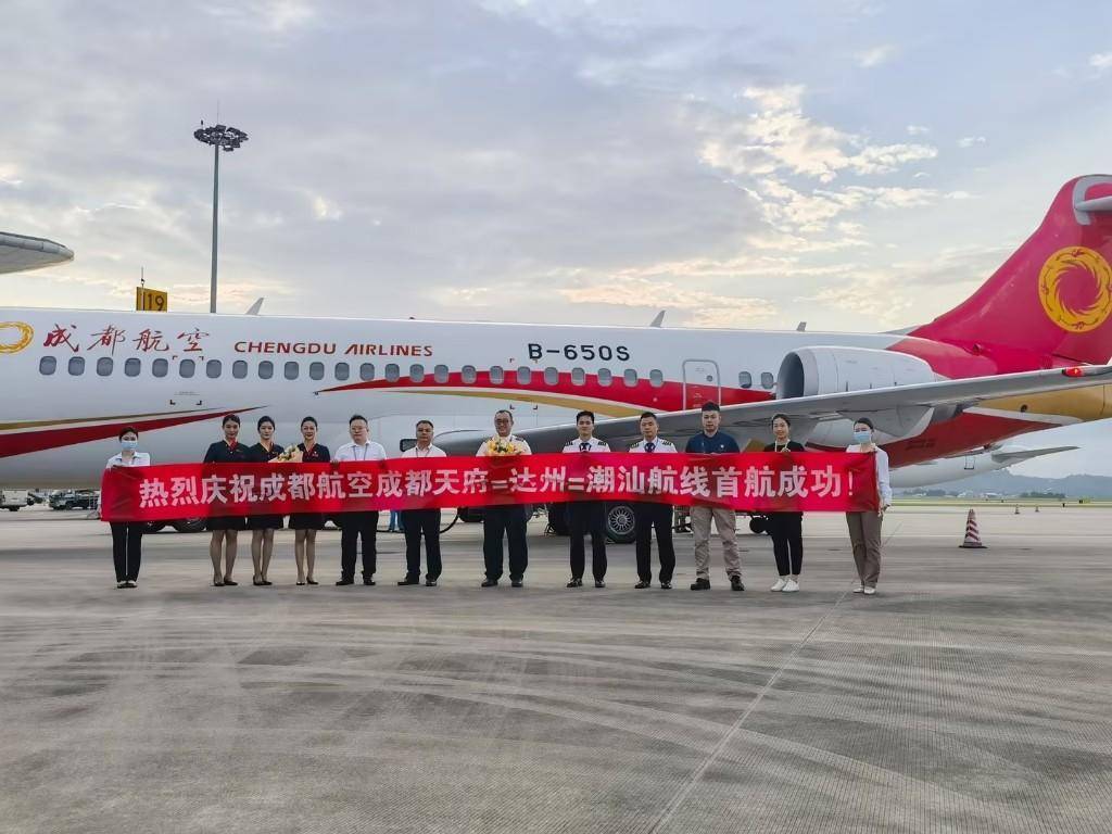 5月17日18时05分,随着成都航空EU1859航班缓缓在揭阳潮汕机场落地,潮汕⇋达州⇋成都天府航线首航成功。