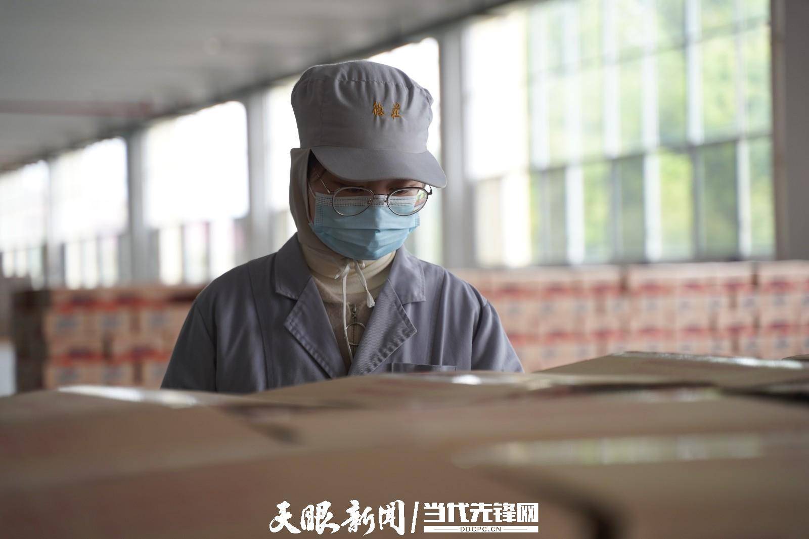 遵义德庄辣椒食品科技文化产业园技术品控部主管徐伟伟正在对产品检查。吴浩宇 摄