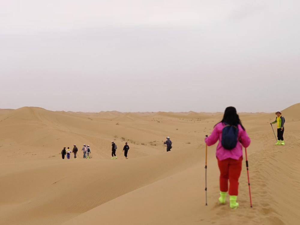 4月30日,旅行团从银川的集合地驱车前往腾格里沙漠。午后,一行人来到了徒步的起点。