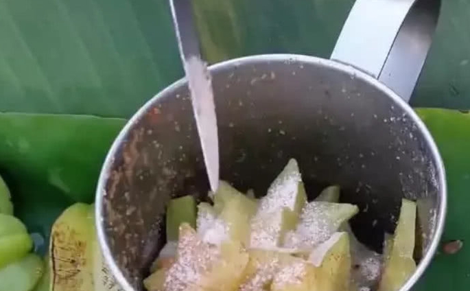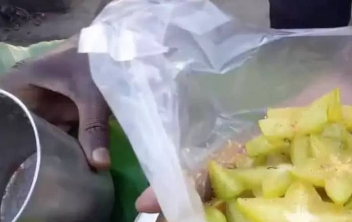 接着拿出来一个杯子,将切好的杨桃放在里面,又下入了一些调味料,拿出来一根勺搅拌一下就用塑料袋子装了起来。这就让小编长见识,我们在国内水果都是洗干净就直接吃,非洲人还用这么麻烦。朋友拿起了一块试吃,发现味道也很不错。不得不说非洲人处理水果还是有一套的,大家有没有在非洲买过水果呢?