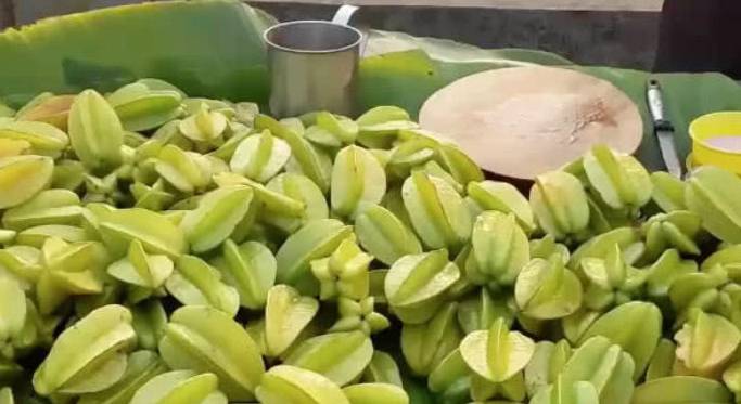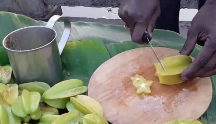 不过朋友却发现了一个卖杨桃的小摊,原来非洲人也喜欢吃杨桃这种水果的。刚好口渴了,我们几个就打算买上一些杨桃来解解渴。非洲男子看到我们几个过来就热情的过来招待我们,朋友挑选了几个杨桃就拿给男子,男子接过手之后就放在一开砧板上面切成一片片的。