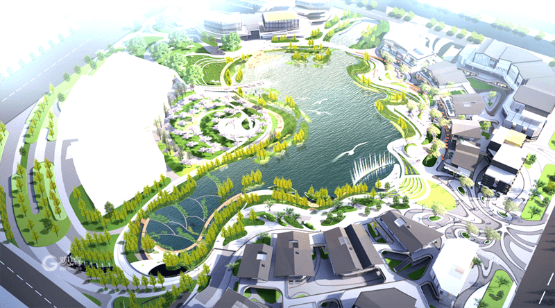 5、近日,青岛高新区中心湖及人工河岸公园项目正式开工建设。