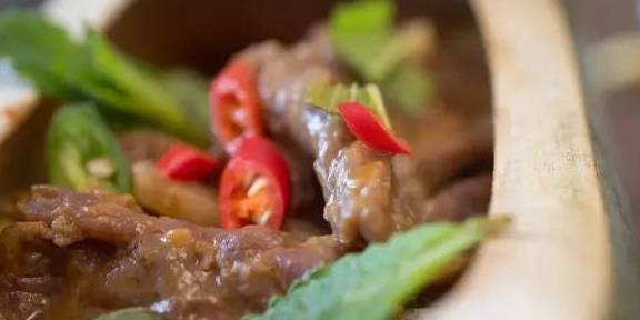 这个酸笋就是让螺蛳粉变“臭”的酸笋,是用鲜笋和清水(或淘米水)发酵而成。牛肉本来是极难炒嫩的肉,但酸笋里酸能软滑牛肉纤维,使得牛肉口感更加嫩滑。