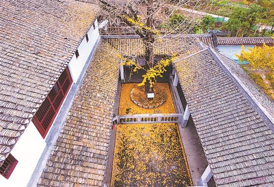 侨乡村毅成公家塾百年银杏秋日落叶纷飞 南口镇政府供图 |