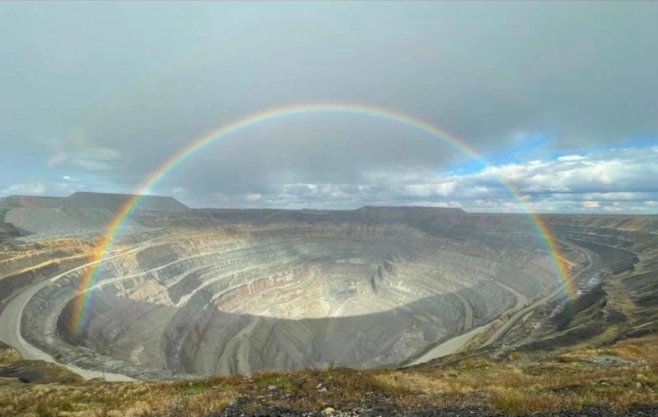 俄罗斯萨哈共和国的采石场好像正在冒出一个彩虹气泡。