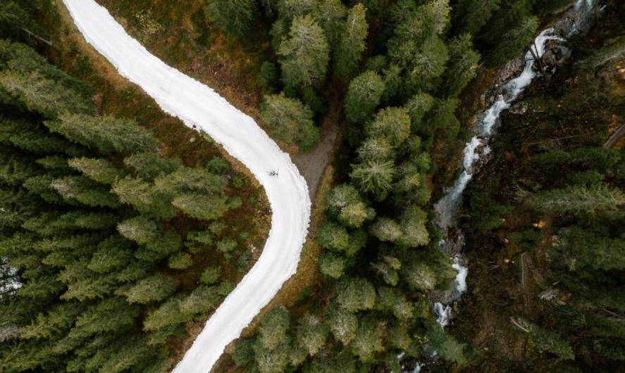 到了夏天,阿尔卑斯山滑雪胜地达沃斯在冰雪消融后,人们用人造雪制成滑雪通道。
