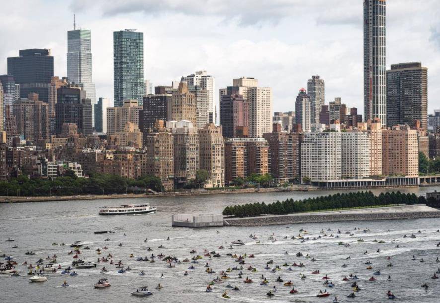 纽约曼哈顿未经授权的摩托艇派对,在警察到达现场之前,轮渡不得不暂停运行。