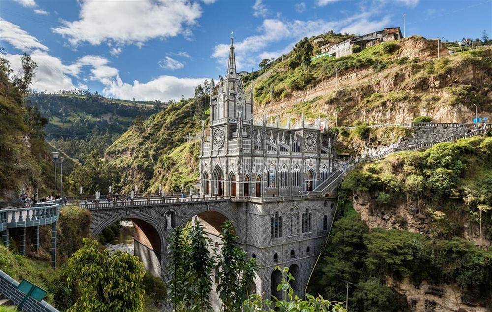 哥伦比亚拉斯拉哈斯圣母神殿,传说岩层上的圣母图是自然形成的,并不是人为建造的。