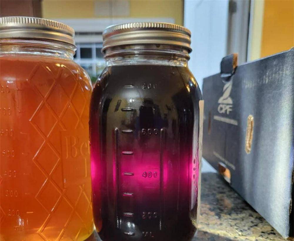 美国的紫色蜂蜜,蜜蜂采蜜时如果花朵枯萎,它们就会吸食木浆果,酿出紫色蜂蜜。