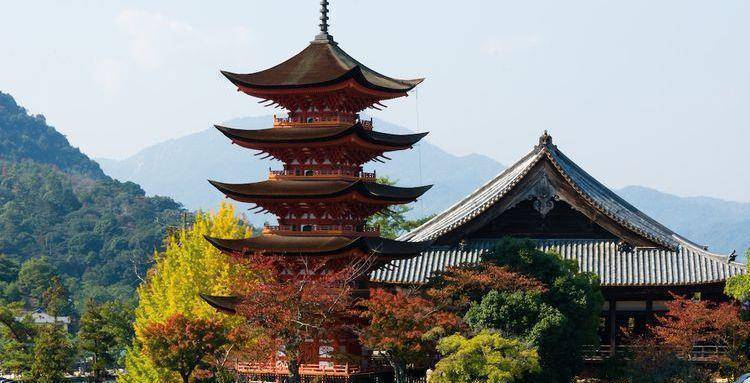 在涨退潮之间,不妨利用时间走访一下周遭的寺社佛阁。例如在严岛神社东北侧,由丰臣秀吉建造的“千叠阁”与五重塔。千叠阁因为内部面积宽阔,将近千张榻榻米而得名,原本是秀吉发愿诵千部佛经而建造的经堂,在明治时代被改为供奉秀吉的“丰国神社”。