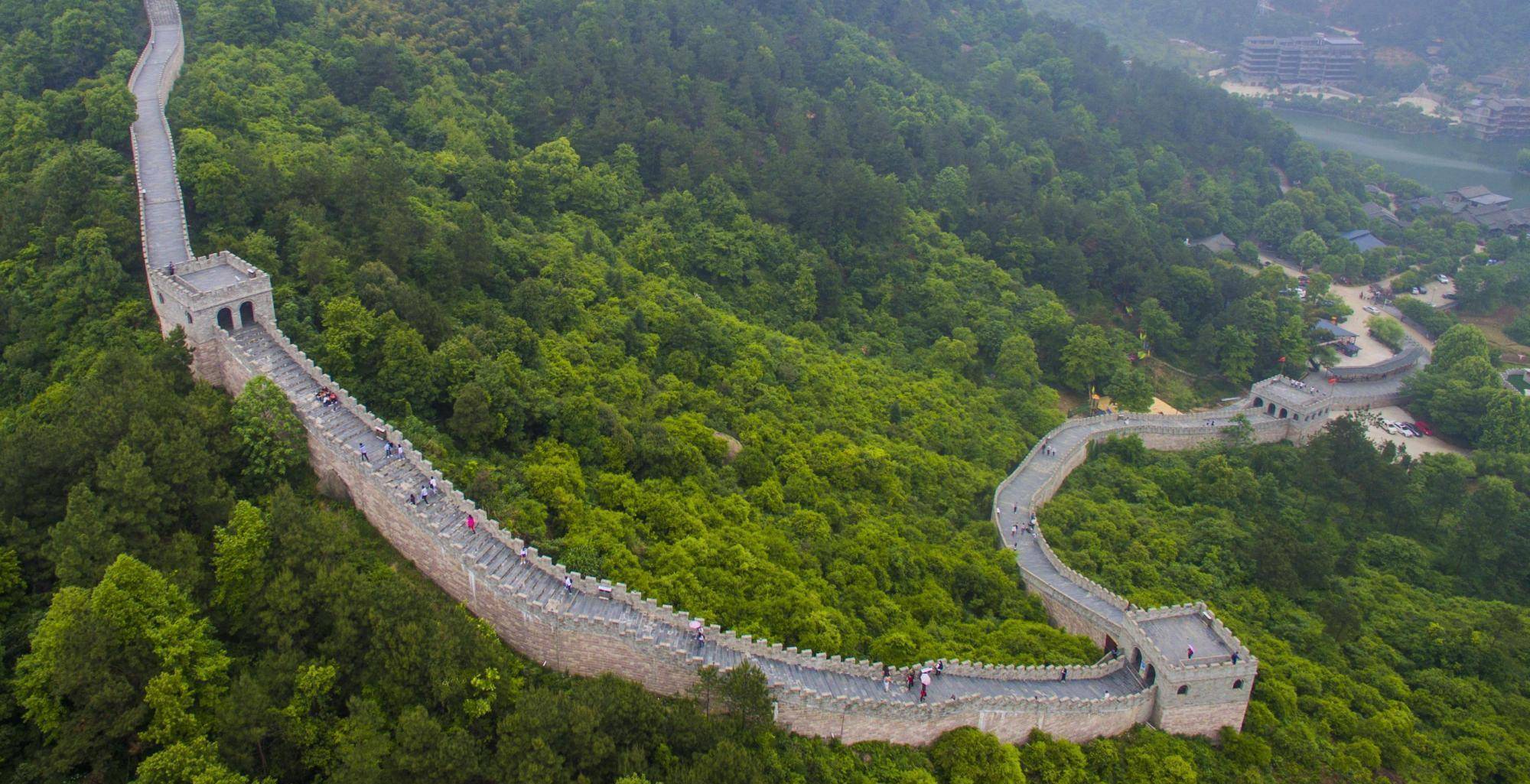 也因为如此,这个生态公园在2013年的时候,在园里耗资1个亿修建了一条全长达4公里的“山寨”长城,据悉,这个“山寨”长城是按照1:1的比例,全面仿造北京八达岭长城而成,横跨了大半个山巅,而且每隔一小段长城,便都会有一座烽火台,虽然是新建,但是仿造技术不错,而且也经历了这么多年的风吹日晒,远远看上去,还真的有那么一点北京八达岭长城的古朴味道。