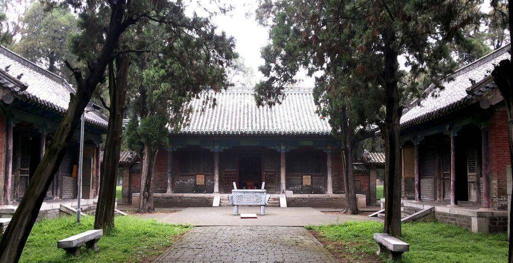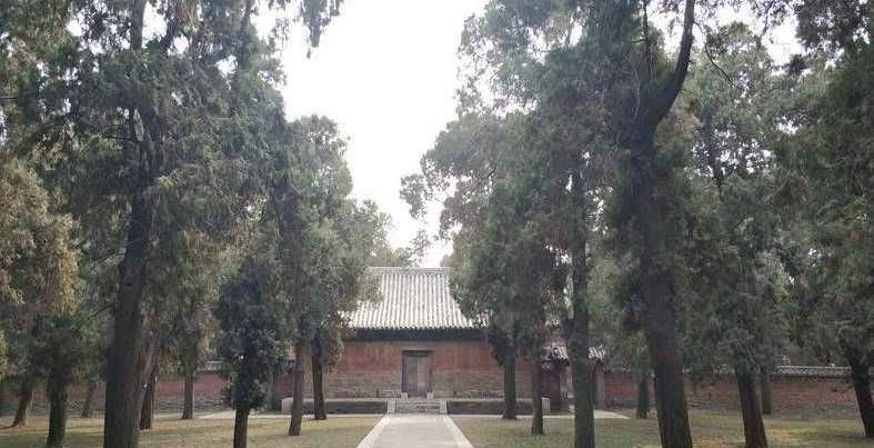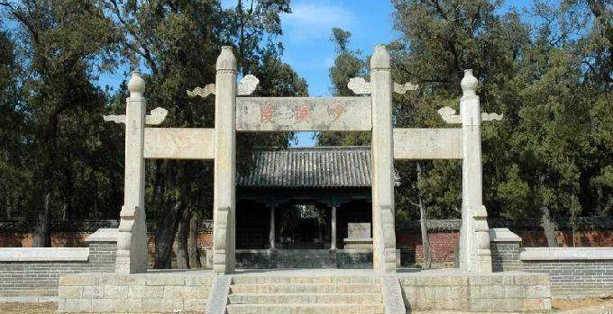 少昊陵坊是后来人为少昊陵修建的,建于乾隆时期。站在少昊陵坊处,向里面望,古木森森,还可以看见享殿。享殿是专门用来祭祀少昊的场所,在正殿的正上方挂着一座匾额,上面写着“金德贻祥”四个大字,这四个字是清代乾隆皇帝手写的,享殿也是在乾隆时期修建而成的。再往里走就是少昊陵墓了,少昊陵墓既包括陵墓,也包含陵墓周围的一些石碑,面积较大。