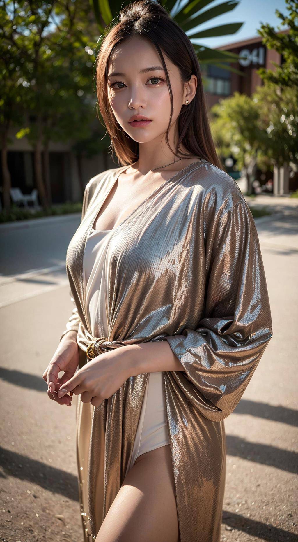 李华身穿一件宽松的浴衣,脚上穿着一双拖鞋。张峰则选了一件简单的泳裤和一件T恤。王丽则穿着一条长裙,手里拿着一把小伞。