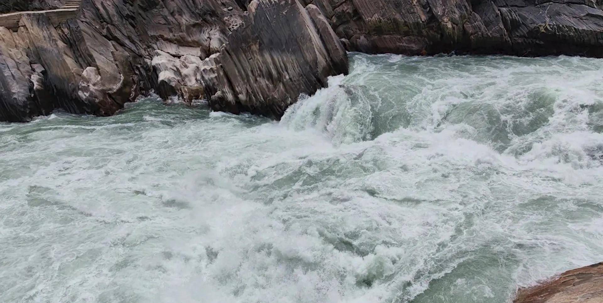 站在虎跳峡的峡口,眼前一片壮观的景象尽收眼底。南岸是高耸入云的玉龙雪山,北岸则是壮阔的哈巴雪山,两岸高山紧紧相连,江流入峡后,宽仅50多米,最窄处虎豹一跃即过,故名虎跳峡。