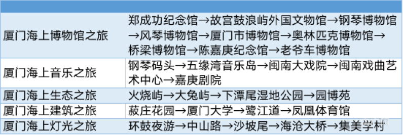 “厦门海上游”系列旅游线路主推产品(央广网见习记者 吴馨骅 制图)