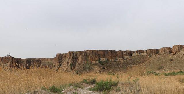 登上台阶,台阶之下是4万年前的史前文明遗址,台阶之上是一处明代长城,这是宁夏市保存相对完整的一段长城遗址,为土夯长城,已有500多年历史,位于水洞沟东面。站在明代长城之上,左侧是内蒙古,右侧是宁夏,真正的一脚跨三省,完成一场500年的穿越之旅。在明代长城对面,是一处天然湖泊红山湖,地处雅丹地貌中,十分罕见,自然景色也是非常美丽。