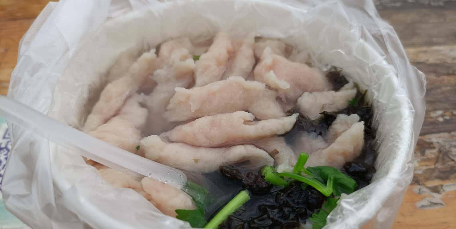 早上在68海里景区等开门时,顺便在一家小摊上过早,看一道名为“福鼎肉片”的小吃品相不错,没吃过的东西必须来一份,看着像面锭子,里面又裹着瘦肉,吃着又糯又香,随口就问老板,这个裹着瘦肉的是红薯粉吗?老板说不是,是木薯粉。我没听懂他的本地话,他也没听懂我的红薯粉,两人纠结了半天,旁边一个本地游客说,就是地瓜粉。那时我突然就想起导游的“万物皆可地瓜粉”,当时就笑场了。