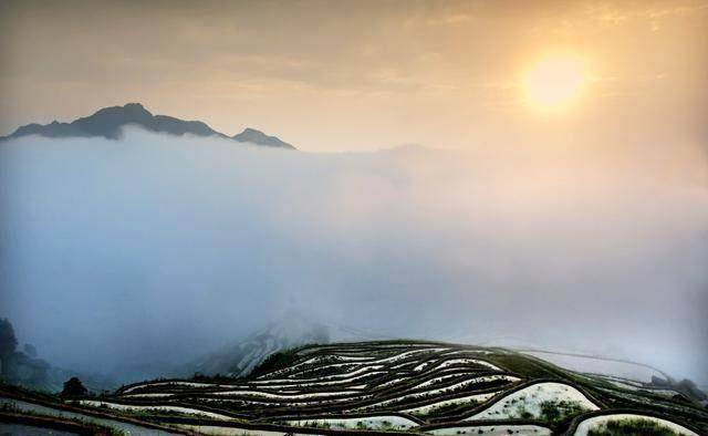 云和梯田的大名想必很多人都是如雷贯耳了。建在海拔千米的高山上,云雾烟雨常笼罩其间,恍如人间仙境一般。错落有致的梯级田畔层层叠叠,起起伏伏,在眼前山谷下铺开,云雾缭绕其中,远处山峰隐现。