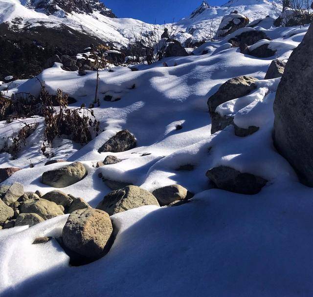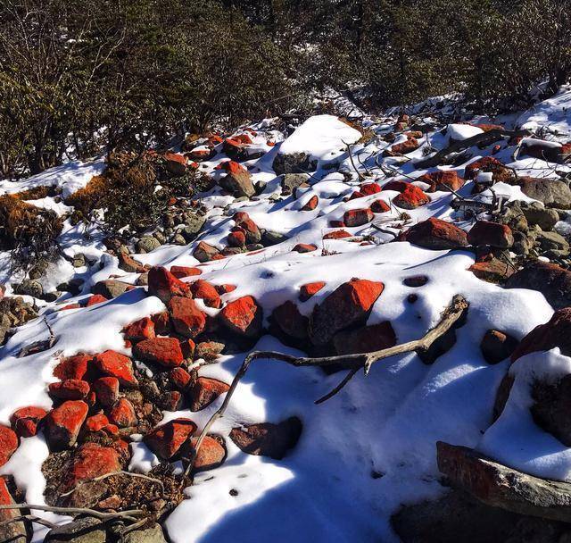 海螺沟红石滩的石头和大雪相互交融,这个场景你可曾见过?