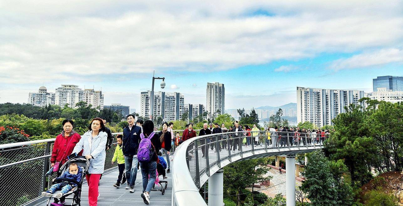 这个健康步道跨越程度已经远远超出了人们的想象,经过了8个山区和三个水区,横跨了仙岳路和海沧大桥,其通过颜色的对比使之形成强烈的视觉效应,在整个行走的过程中,有一个地方被称为是“迷你世界玩具”。仿佛是儿时所玩的一些小汽车的发动轨道,如今是人们在上面一圈一圈的行走,每分钟都能觉得蓝天白云在身边漂浮,厦门的阿公阿嬷都忍不住来这里游玩。