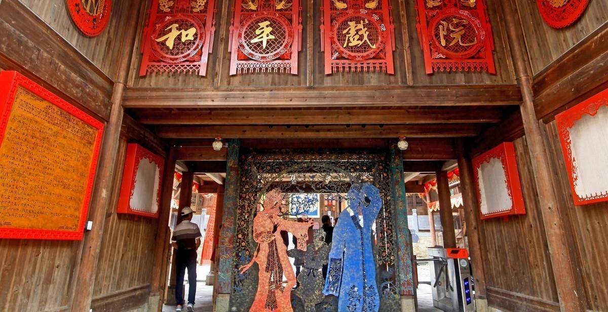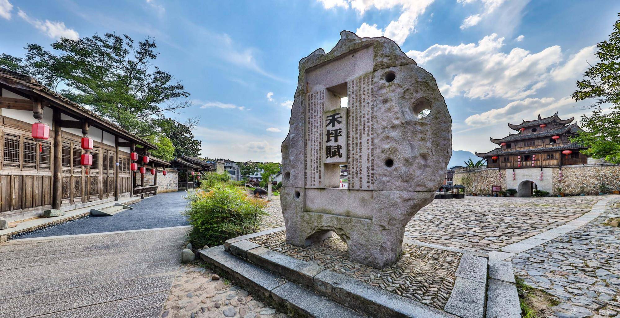 在和平古镇的东面,有一个“黄氏大夫第”,“大夫”是古代的一个官职,而这个黄氏大夫又被称为大东家,他的宅地十分具有看点,在后花园里居然还有一个民居大戏台,它的这个民居大戏台目前来说就只发现这一例,十分罕见,整个宅第是石构牌仿式的八字楼,富丽堂皇,在主院落的建筑上分别雕刻了各种动物,有着十分深刻的意义,又充满着福建特色,在花窗上雕刻有蝙蝠和小鹿,用来象征“福禄”连绵。