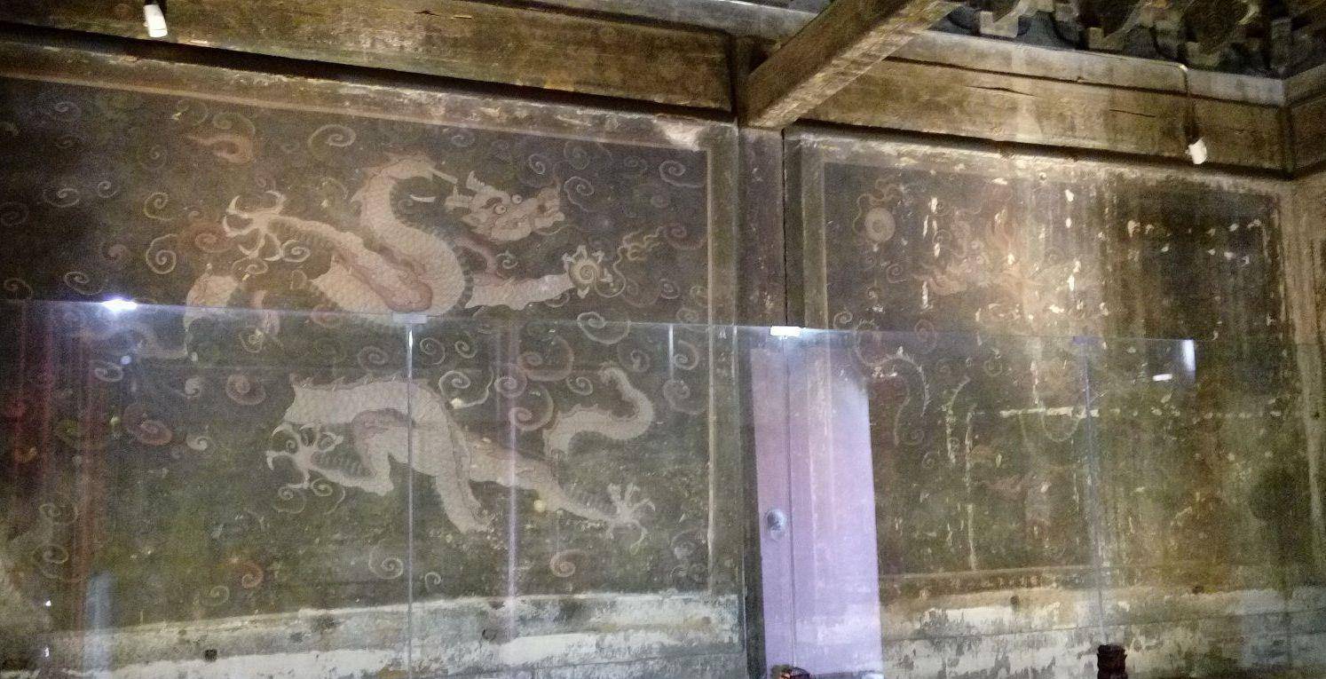 古寺中有许多极具价值的古物,概括为“五绝”,指的就是这里的碉楼、鼓楼、壁画以及字柏和马石,其中彩绘的壁画最有看点,作为一座皇家寺庙,其中的龙文化凸显的淋漓尽致,在寺庙的山墙上雕刻有四条彩龙,除此以外,再加上不同动物形象的彩绘,十分生动灵活,被很多专家称之为最具研究价值和观赏价值的壁画。