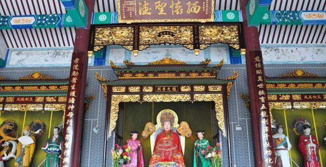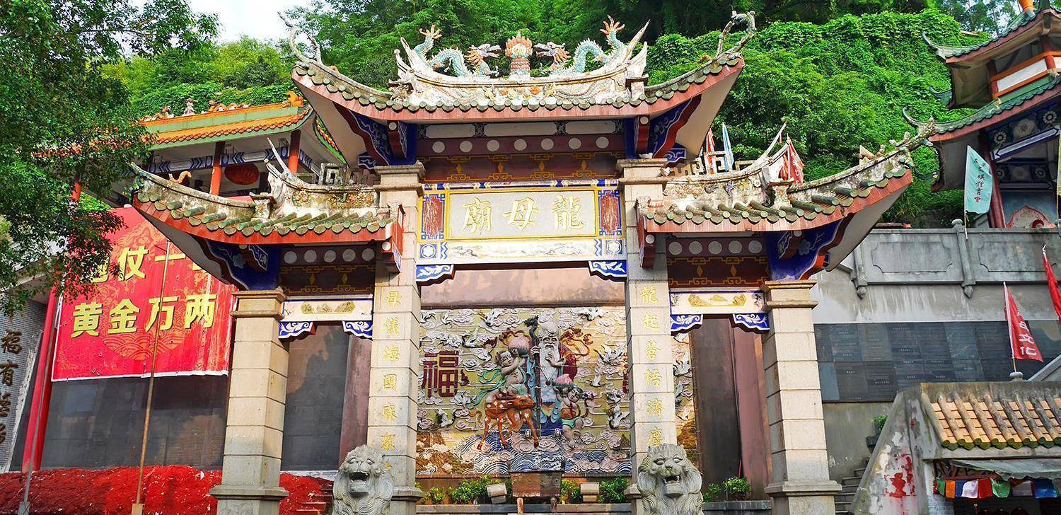在龙母庙的门前坐着两只石狮子,又被称为雄雌狮子,以男左女右的观念将其摆放在这里,其中雄狮子代表的是统一天下,在古时以武力来争夺权力和名誉,而雌狮子代表的则是传宗接代,希望后代能够奋起直追,将江山世世代代相传下去,进入到殿堂内便会发现这里摆放着一个巨型的浮雕,也是以龙母为原型进行雕刻的。