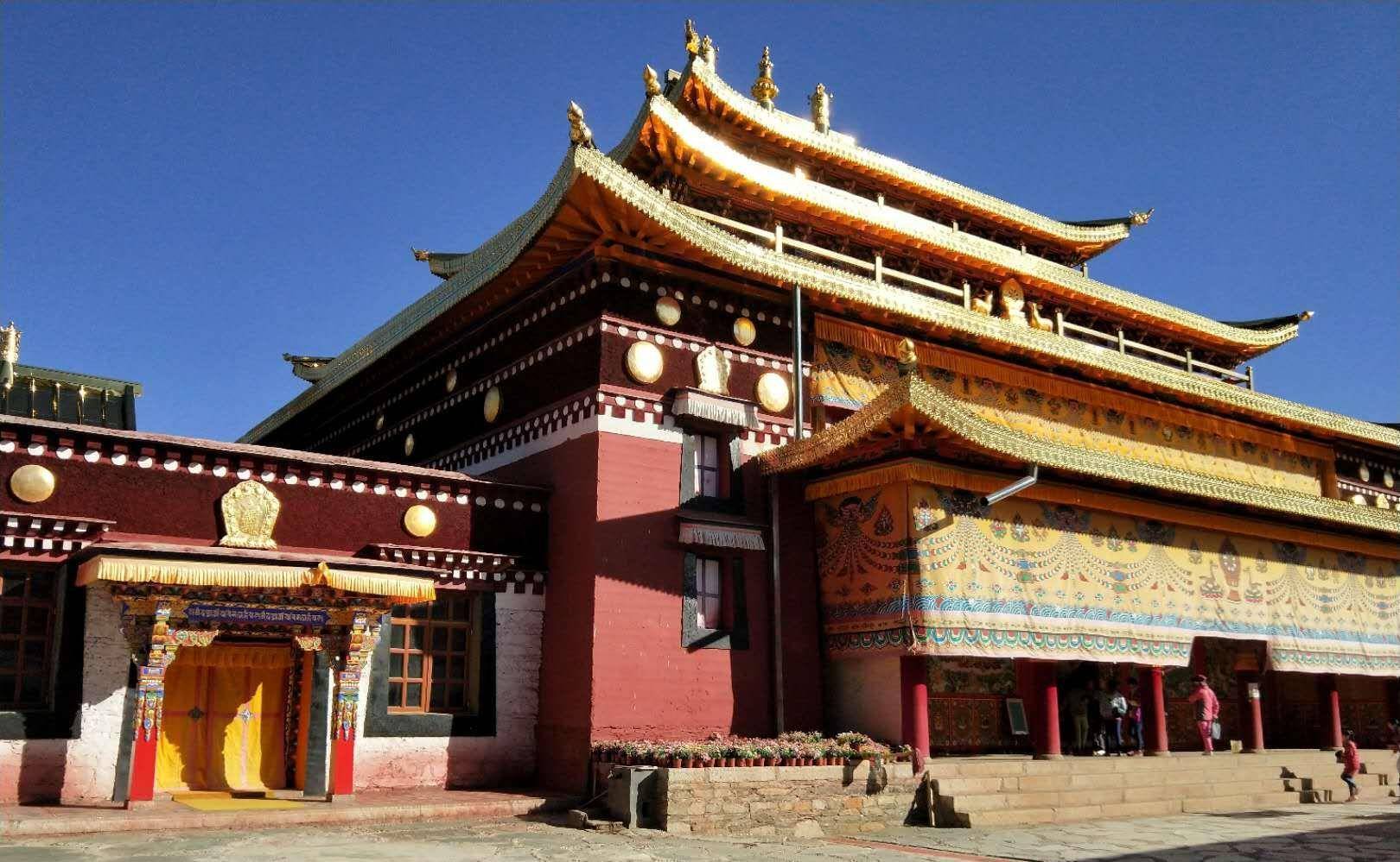 四川省那边的“达仓郎木格尔底寺”是在1413年建立的,有18座分寺、500多僧人,是格鲁派一个很具影响力的寺庙,里面有一个肉身殿,从外面看上去就是一个农家小院,很是平凡不起眼,都是门口却有很多人在朝拜、转经,一转就是一天。其里供奉的就是第五世格尔登活佛的肉身灵塔,一般来说,藏传佛教中大多都是供奉的佛骨舍利,而这里就是藏传佛教寺庙中唯一的一个有活佛肉身的地方。