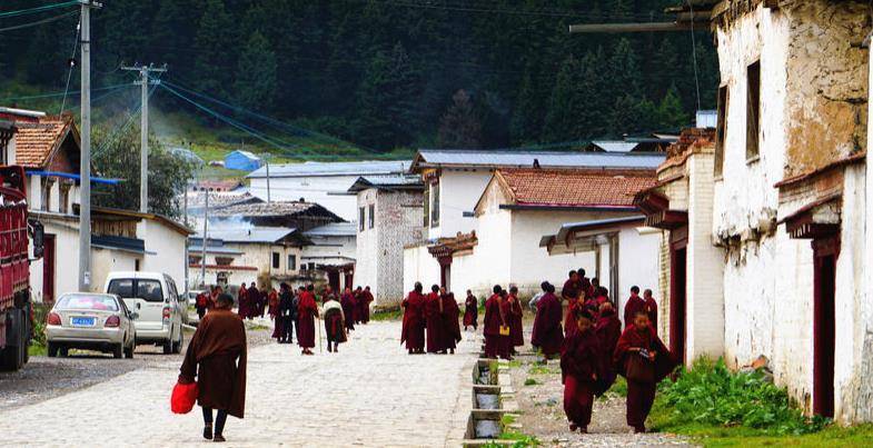 寺庙里的墙壁大多都是纯红或者纯白色的,看上去非常有历史的厚重感,而且建筑物上的彩绘雕饰非常的精美。寺庙里早课之后,僧人随处可见,有时还会对你打招呼,而且很多都是一些小喇嘛,很是活泼可爱,这里虽然是寺庙,但是也有小卖部的,这些小喇嘛相互追逐奔跑的前往小卖部,像极了以前我们小时候读书下课后去买东西的样子。