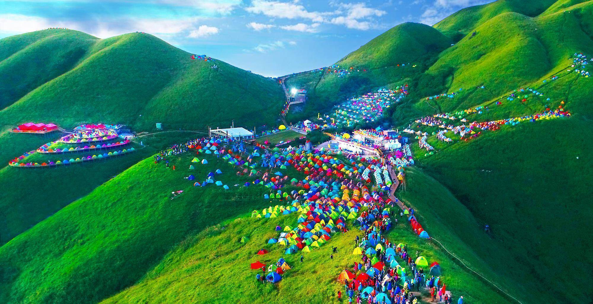 武功山的总面积为260多平方千米,且主峰金顶海拔更是高达1918.3米,其原名本来是叫做“武公山”,但因为明代徐霞客曾在武功山赋诗一首,其中有一句“五岭堪比武功山”,之后才更名为“武功山”。武功山主要以“云、石、峰、瀑”等风景闻名,特别是其中的十万亩高山草甸更是吸引了很多旅游爱好者前来,2013年,萍乡武功山国际帐篷节照片甚至还登上了美国的《时代》杂志。