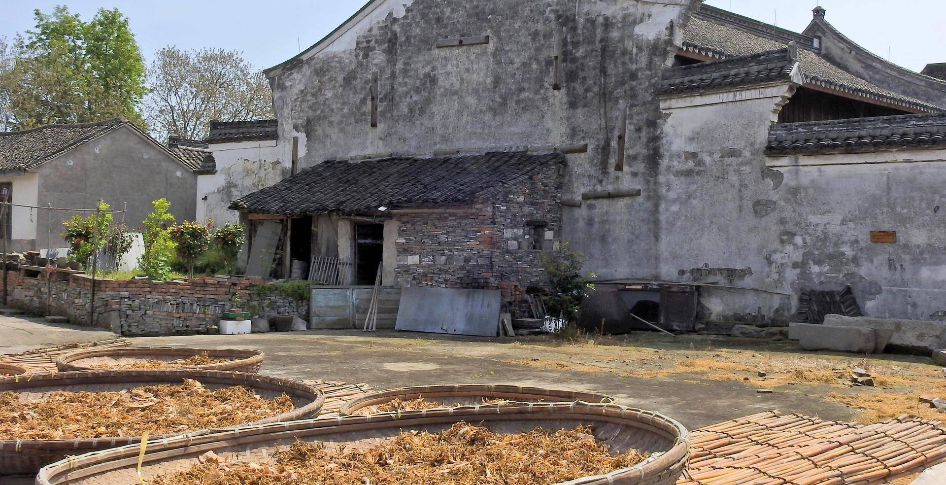 鸣鹤古镇内部的建筑大都为豪宅,大多是鸣鹤叶氏一族经营国药业发家致富后所建造的,走在小镇的巷子里,有的人家还没有关上门窗,还可以看到古色古香的雕花床。