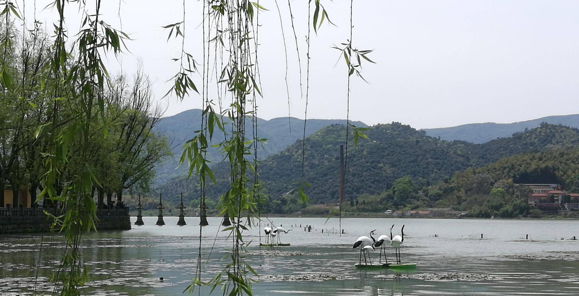 走出鸣鹤,可以看到湖面上有一条笔直的石子路似乎直达互信,沿着这条石子路走下去,到尽头是更能畅快一览湖景,一阵清风拂过,湖边的柳叶欢快地打着旋儿,水草的清香迎面扑来。不过有点可惜的是,鸣鹤古镇没有传统的古镇项目游船,白洋湖的水质清澈想是因为这个原因吧。