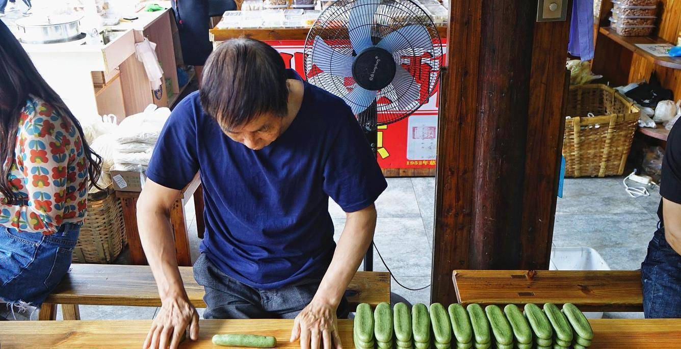 古镇里还有年糕手工坊,如果对制作年糕感兴趣,还可以去尝试一下哦,把年糕揉搓,搓成饼状包入馅料,再次揉搓,揉搓成圆柱形,年糕饺就这么完成啦。咬上一口刚买的年糕,还是热乎乎的呢。