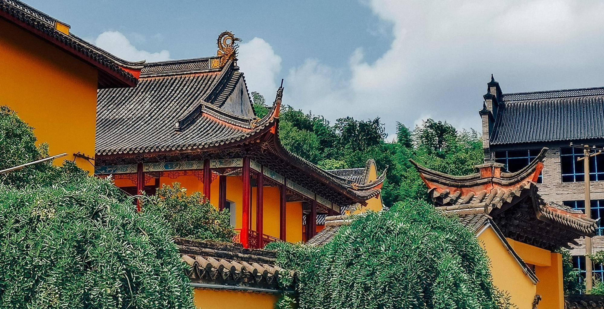 鸣鹤古镇的入口右手边是白洋湖,白洋湖的水质清澈见底,而入口左手边是金仙寺,金仙寺是一座千年古刹,背靠禹王山,登上金仙寺之后可以俯瞰整个鸣鹤古镇。