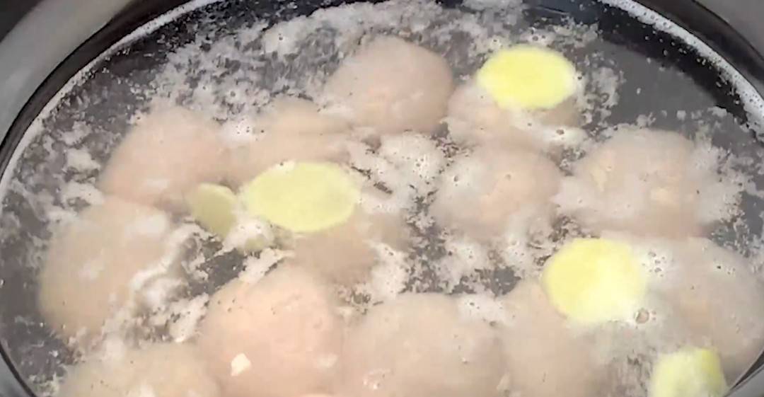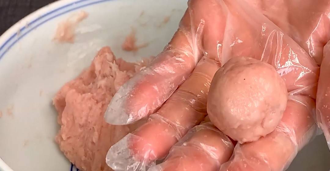 4、手中抹一层油,捏一点肉,团成圆形,全部团好以后就可以下锅煲汤了。