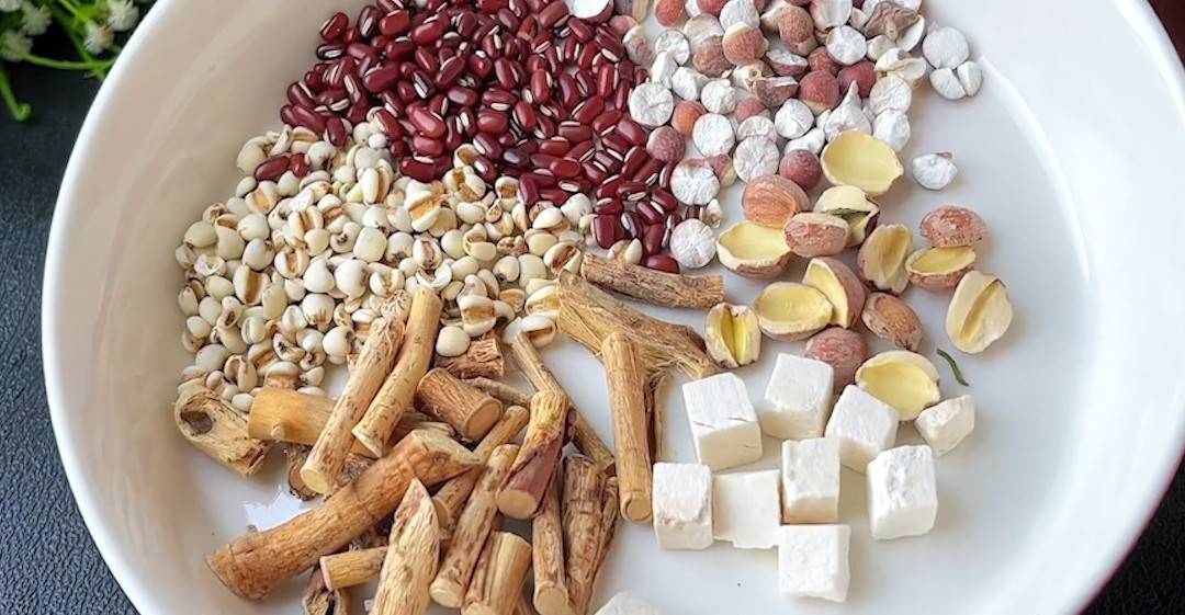 1、准备五指毛桃,土茯苓,红莲子,芡实,薏米仁,赤小豆,把它们放入清水里清洗一下,洗去灰尘和脏东西,洗干净,把水倒掉,再倒入干净的清水浸泡20分钟。