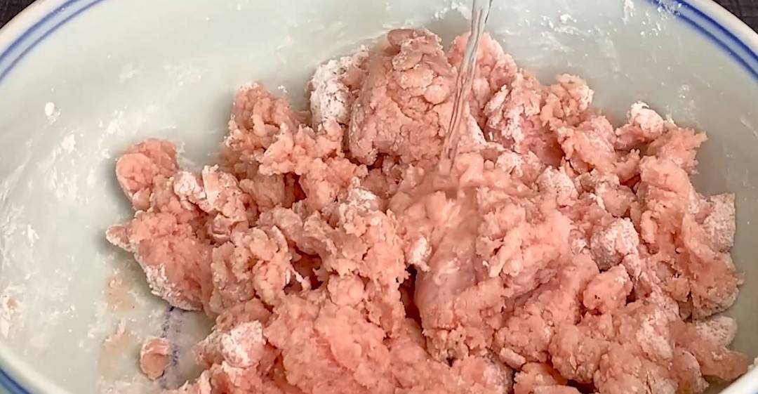 3、搅拌均匀后,再往里面加入少许的清水,大家也可以用葱姜水再次拌一拌,搅拌至水分完全吸收以后,再一次加入清水,继续搅拌一下,搅拌好以后再用手摔打二三十下,让它充分的上劲,摔打好以后就可以做丸子了。
