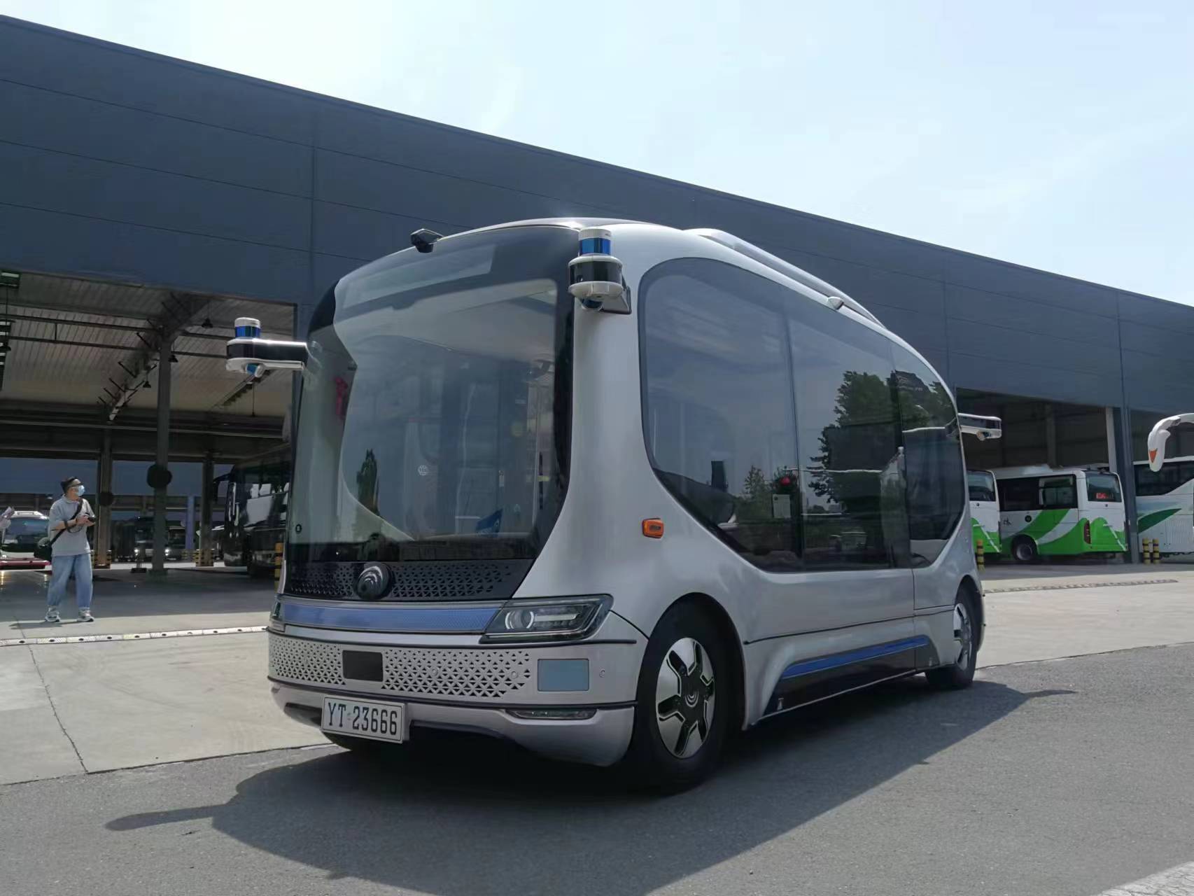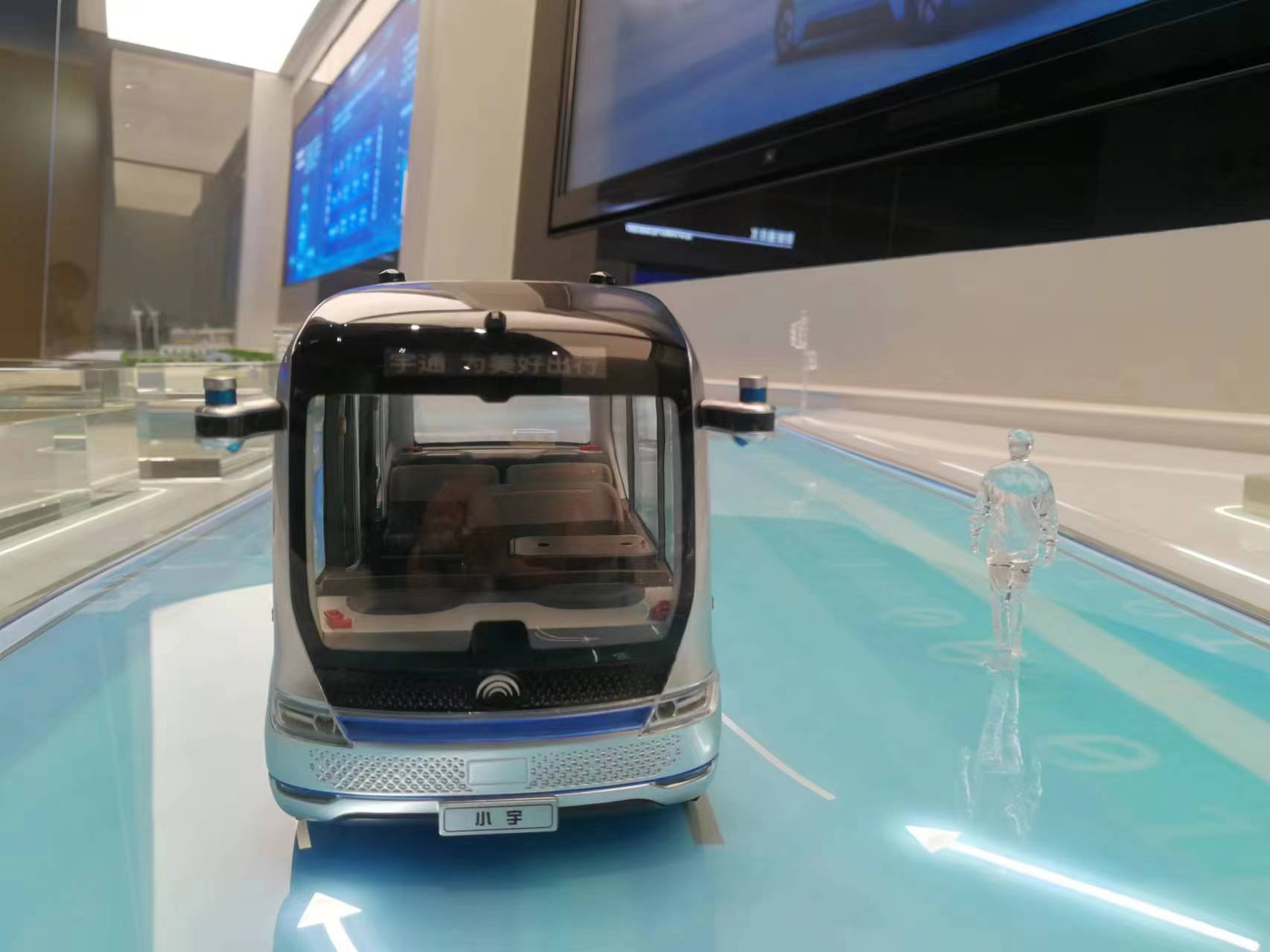 宇通智能驾驶巴士小宇凭借小巧可爱的造型、科技感十足的设计以及智能贴心的人机交互,吸引了网红博主前来体验打卡。