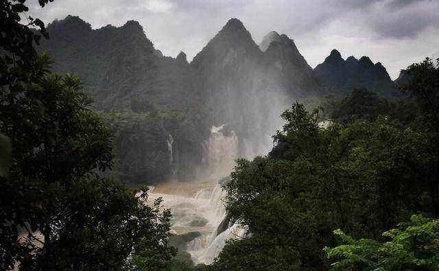 德天大瀑布横跨中国、国外两个国家,是亚洲第一、世界第四大的跨国瀑布。瀑布气势磅礴,一波三折,层层跌落,水势激荡,声闻数里。瀑布河水时急时缓,时分时合,迂回曲折于参天古木间。