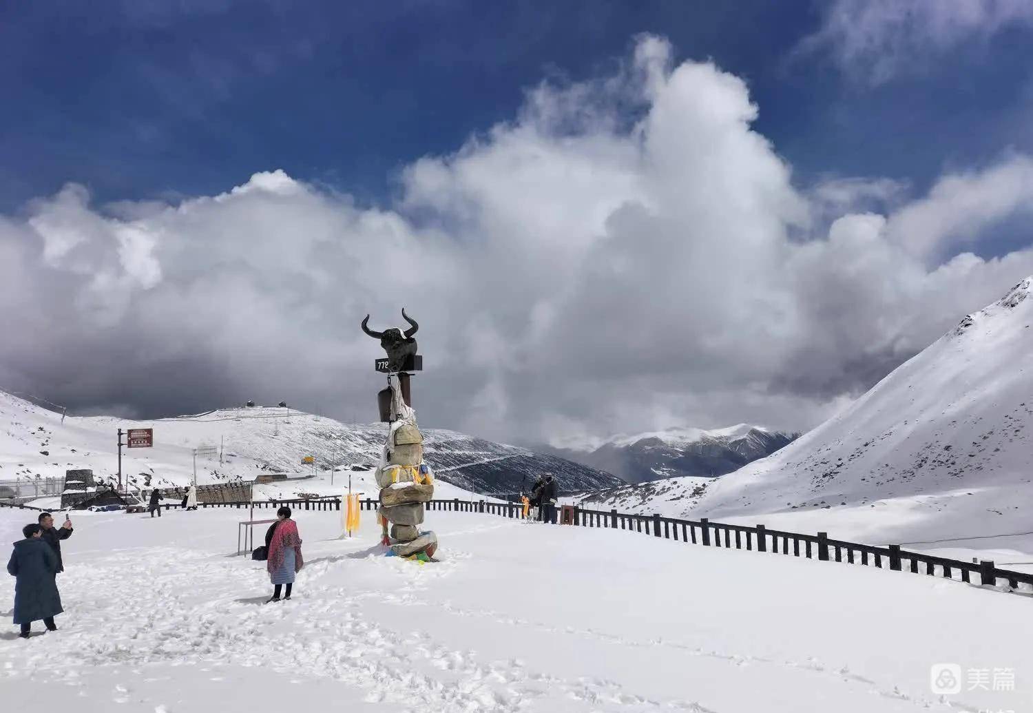 还有就是登色季拉雪山时,看到山上下来的车几乎清一色的越野车,并且大都带着防滑链,当时我就有点想打退膛鼓,担心我的车动力太弱上不去,后来看到我前面那个车也是个小排量的车,并且驾车的还是一个比我大了十多岁的老大哥,这时,我决定无论如何都要冲上去。后来,我顺着老大哥的车轮印走,一步一挪终于攀上了色季拉山垭口。