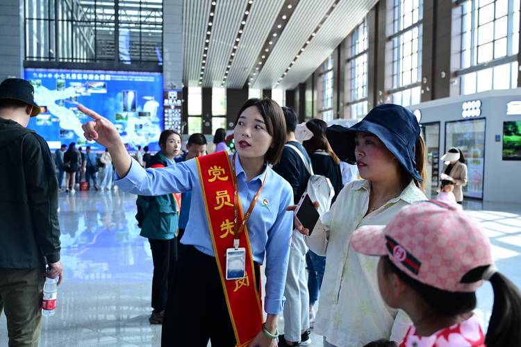 荔波小七孔景区的游客服务中心,党员先锋正在耐心为游客提供服务。荔波县融媒体中心供图