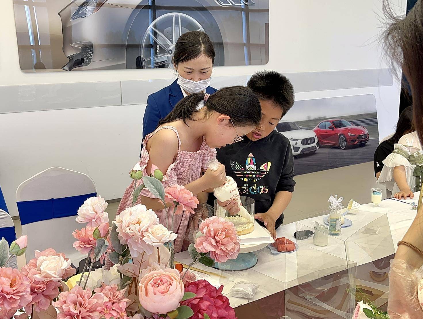 现场活动欢快,家长和孩子的互动画面,非常的有爱生动。孩子们发挥着各自的想象力,表达着内心最美好的向往,完成自己喜欢的DIY鲜花蛋糕。在这短暂的温馨时光里,展厅内充满了欢声笑语,玛莎拉蒂将始终在这里期待与您相遇,让我们一起期待下一段的旅程吧~