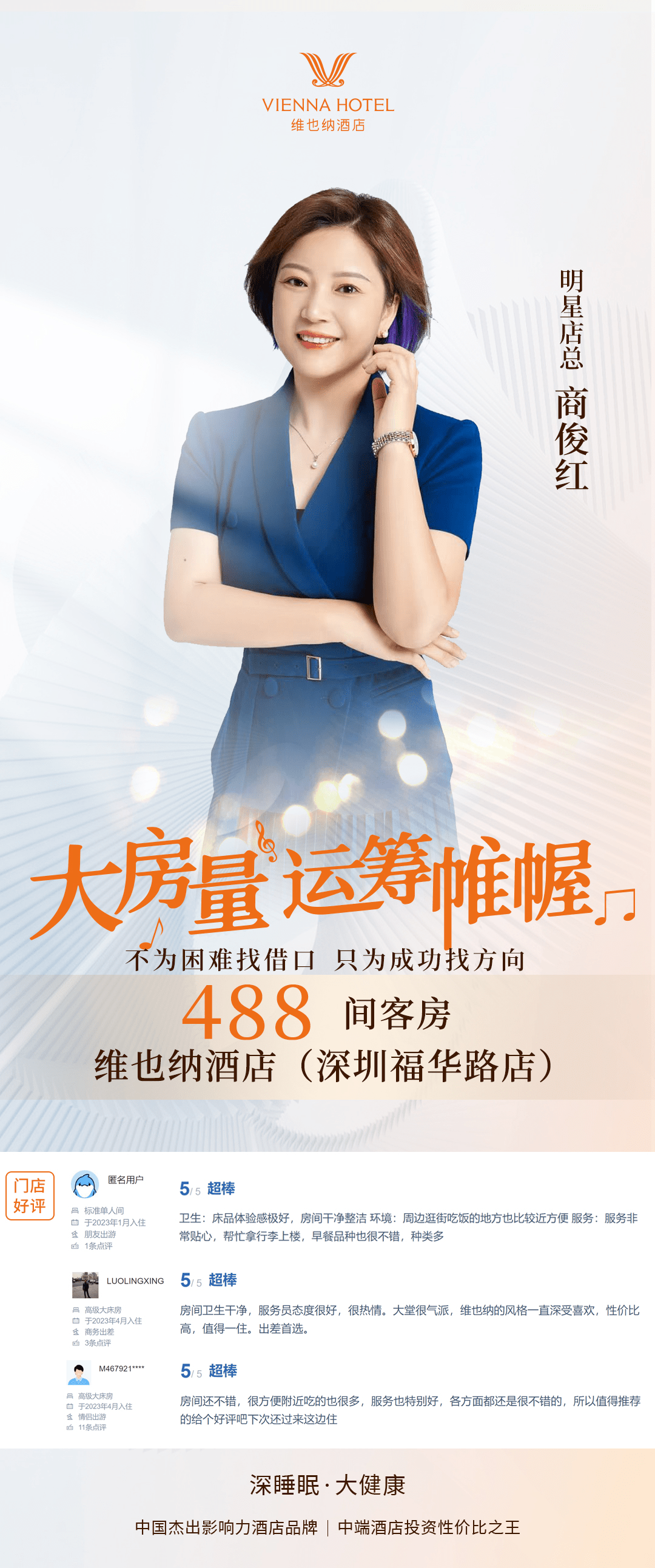 其次是实战运营经验丰富,能为大体量酒店运营提质增效。在大体量酒店运营中,有勇无谋是大忌。精密的谋划藏身于经年累月的运营管理经验总结中,非一日可得。经过30年市场磨炼的维也纳酒店运营团队,已拥有一套成熟的运营战略和方法论。一直以来,维也纳酒店都以行业内首推的高效智能化运营体系,标准化管理流程,丰富的成功管理经验,共同打造“高效率、高品质”的运营力。强规模、强运营的统一管理团队,上千店的成功案例、多元适配的投资方案、专业的营销运营赋能等,都为维也纳酒店的成功复制提供了切实保障。更为值得一提的是,维也纳酒店利用其优秀的供应链体系和差异化的轻改战略,使得门店在降本增效的同时,住客满意度、RevPAR也得到显著提升。