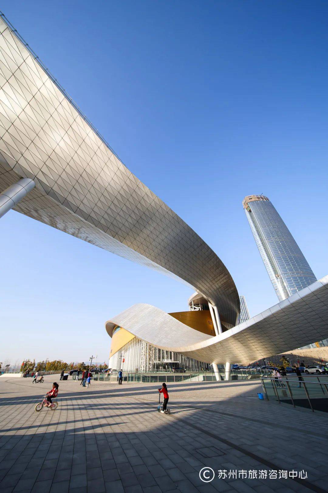 苏州湾博物馆,2023年1月17日开馆启幕。它“最大”的一件露天藏品,就是这座由法国建筑设计师包赞巴克设计的苏州湾文化中心。他用全球化的浪漫为时间筑巢,亿万年的太湖,7000年的马家浜,他用无限的意象构造了太湖的“莫比乌斯环”。