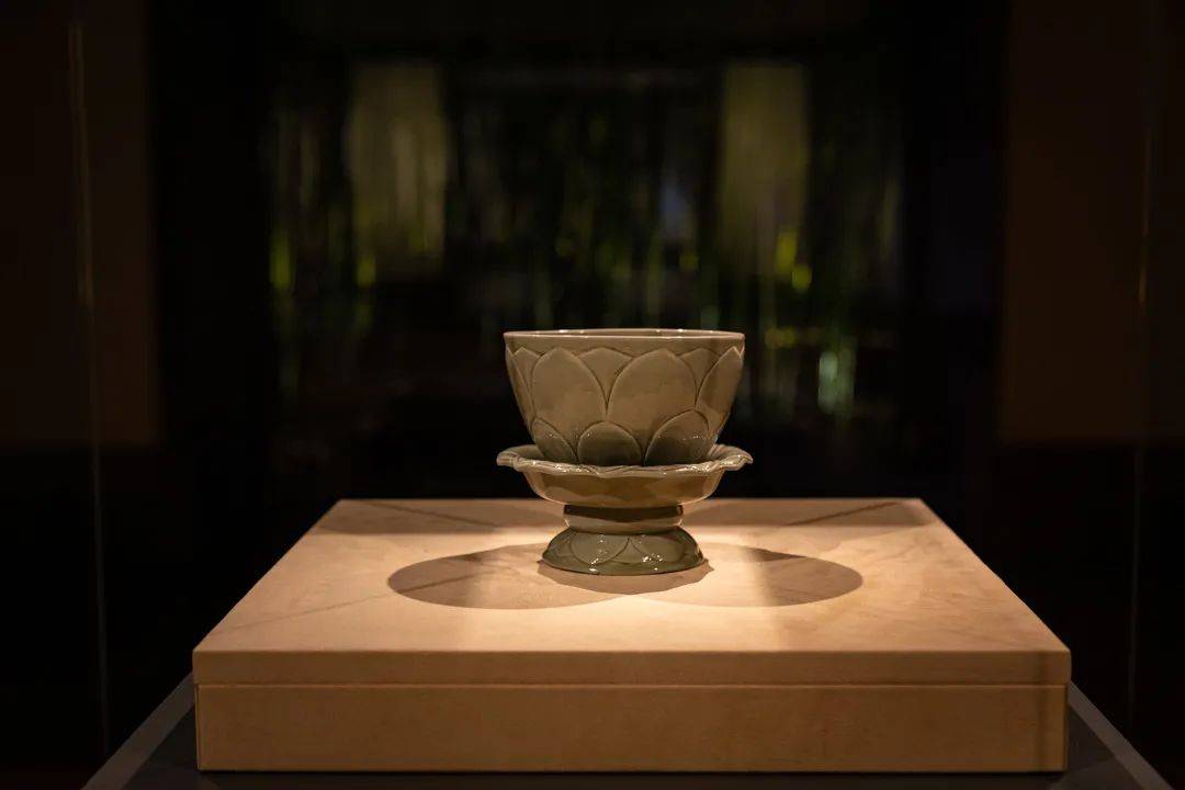 五代越窑秘色瓷莲花碗于1957 年在虎丘云岩寺塔第三层天宫中被发现,它是苏博的又一闪耀珍品。