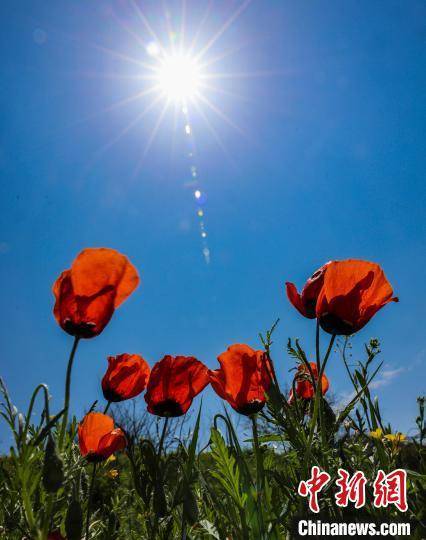 在蓝天的映衬下,红花更显热情奔放。 董国梅 摄